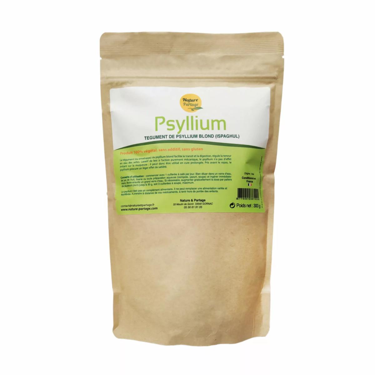 - Composition : psyllium blond en téguments (poudre) en sac de 300gr
